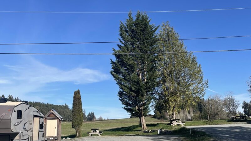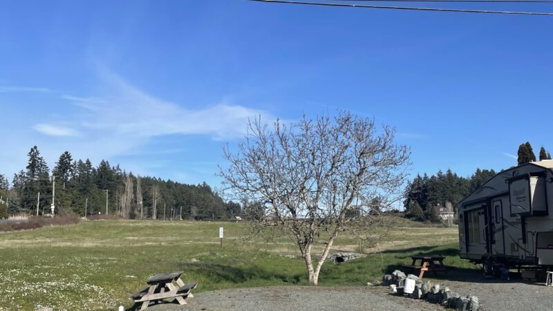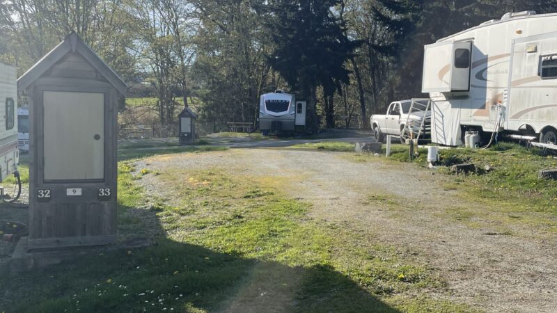A larger RV SIte Serviced with water, sewer, and 30 AMP Power. Also with direct access to green space! Suitable for RVs up to 40'